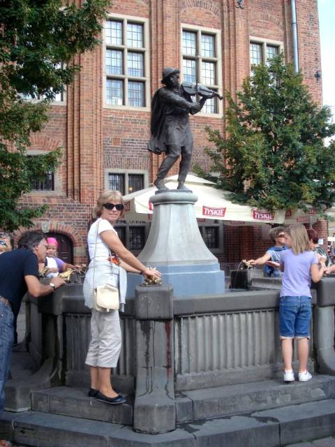 Droga nad morze prowadziła przez Toruń dlatego zwiedziliśmy go poczynając od Starego Miasto gdzie stoi pomnik Mikołaja Kopernika. Pod fontanną z małym skrzypkiem i żabkami dookoła wysłuchaliśmy legendy o żabach atakujących miasto i grajku który wyprowadził je poza teren Torunia. Potem odwiedziliśmy Krzywą Wieżę która jak wieża w Pizie demonstruje swoje pochylenie. Na koniec posłuchaliśmy opowieści o torturach czynionych w zamierzchłych latach na osiołku z specjalną uprzężą.