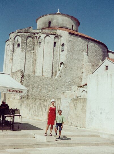 Bibinje okazało się małym miasteczkiem położonym około 6 km poniżej Zadaru nad samym morzem. Posiadało ono pocztę, dwa stare małe kościoły i jeden duży nowoczesny, przystanek autobusowy (co godzinę autobus), kolej (nie zauważyłem pociągu) restaurację, biuro obsługi turystów, kilka przeważnie samoobsługowych sklepów oraz kilka kafejek gdzie można było się napić piwa, kawy, zjeść lody.