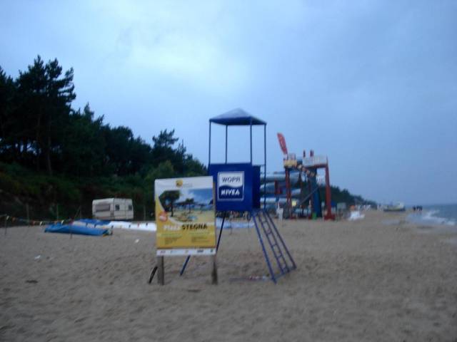 Do Stegny przyjechaliśmy późnym wieczorem i zakwaterowaliśmy się w ośrodku o pięknej nazwie "PERŁA ". Bardzo podobał mi się on, zalesiony z ładną stołówką i miłą obsługą. W niewielkiej odległości od morza z dużą piaszczystą plażą i zapleczem kulinarnym. Oczywiście kąpałem się w Bałtyku choć pogoda nie bardzo była przychylna, lecz i tak spełniłem swoje postanowienie o kąpieli.